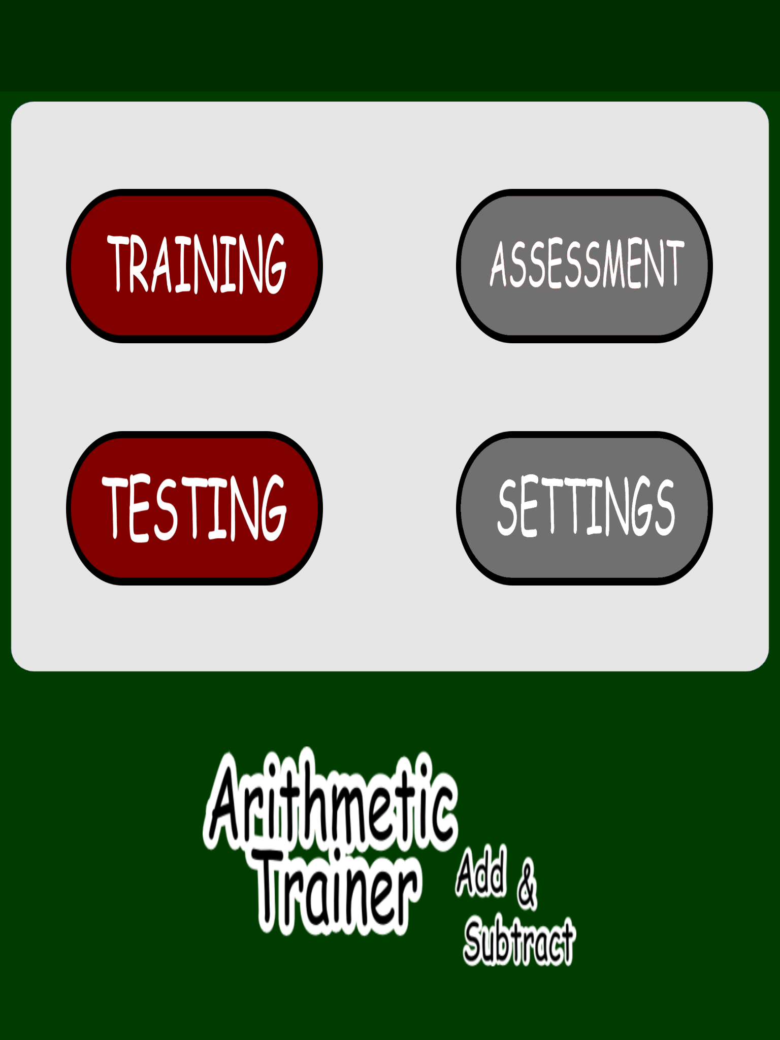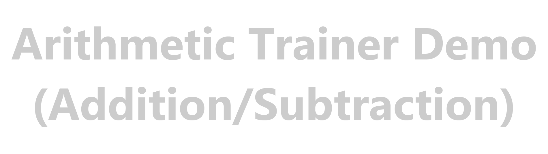 The Arithmetic Trainer app is designed to provide learners with simple software targeting this particular math skill, namely addition and subtraction. Starting with 1+1, the problems will gradually involve larger numbers while providing occasional repetition of problems already answered for reinforcement. Training and testing modes are offered. In training mode, the answer must be correct to continue, enforcing accuracy. Testing mode will accept incorrect answers and randomly retest those problems as the learner proceeds. Addition and subtraction are mixed together.